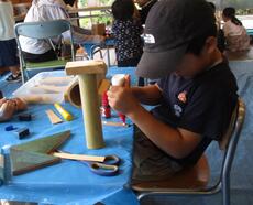 キッズパークの切った木や廃材で、木工工作ができますよ!