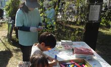 絵本の広場+はっぱのスタンプでうちわを作ろう