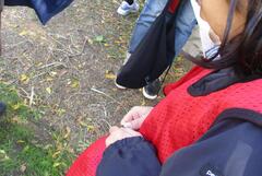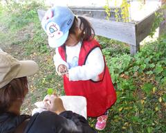 絵本の広場の後に、キッズパークの中にある春の花を探して花かごを作りました。