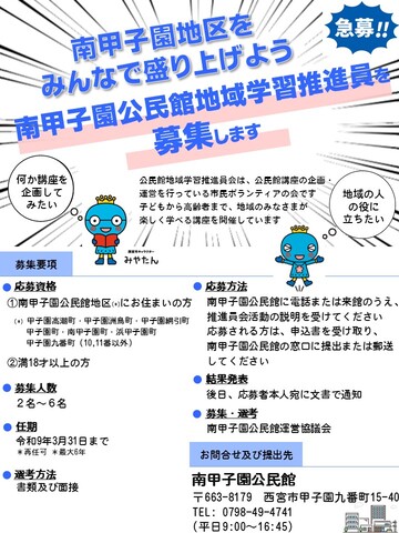 その際は件名に「南甲子園推進員募集について」と入力をお願いします。