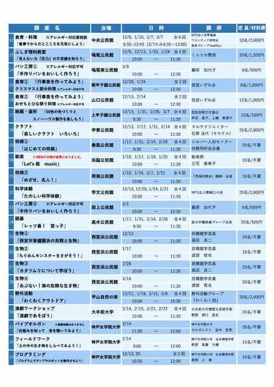 26 | 生物(2) | 西宮浜公民館 | 16人 | 不要 | 1月17日(土曜) |
