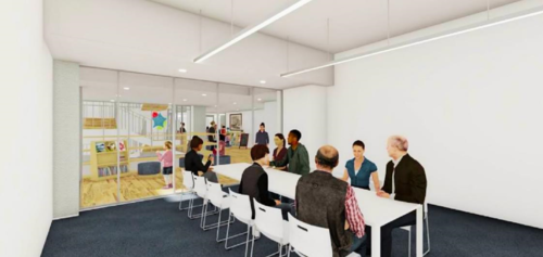 - 多目的協議スペースは隣接する集会室と一体的に利用可能(可動の間仕切り)