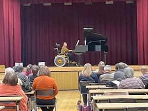 【ピアノコンサート】車椅子ピアニストのピアノ演奏とお話、歌を楽しみました。