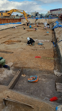 現在、新陸上競技場スタンド及び新体育館(南側部分)の建設予定地付近を調査しています。(10月中旬撮影)