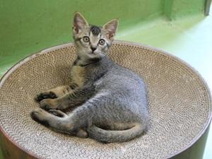 その他特徴 | 7月生まれの子猫です。ミルクボランティアさんの元から戻って来ました。穏やかで慎重な男の子です。毛並みがアビシニアンのようで、きれいなグレー色をしています。日々、おもちゃなどで元気いっぱいに遊んで成長しています。 |