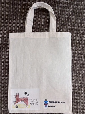 動物の愛護に関係した標語を盛り込んだトートバッグ作りにも挑戦してもらいました。イラストに色を塗ったり、