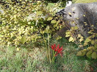 紅白のヒガンバナ 山荘庭園内