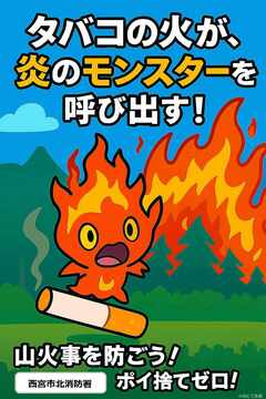 北消防署では、山火事予防を呼びかけるため、ポスターを作製して広報を行っています。