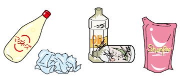 - 軽く洗っても中身の残るチューブ、容器、ラップなど