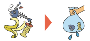 - 指定ごみ袋に入れ、口をしっかりとくくってください。