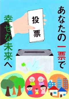 明るい選挙啓発ポスターコンクールは、将来の有権者である児童生徒の皆さんに、明るい選挙を実現するためのポスターを描くことで、選挙、政治への関心を持ってもらうきっかけをつくってもらうために実施しています。